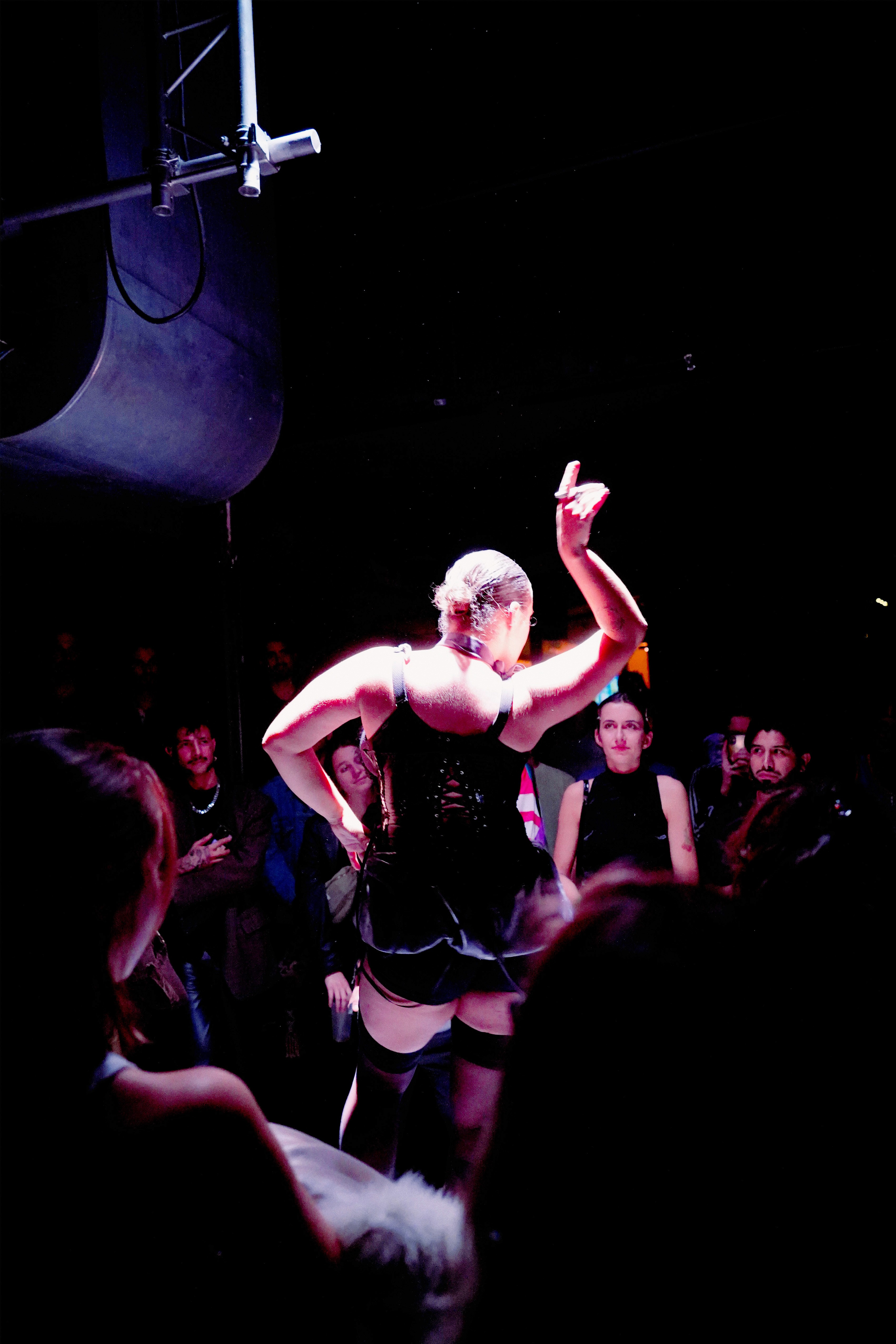 À la croisée de la danse, de la musique électronique et de la scénographie numérique, le spectacle explore la culture de la nuit comme un véritable laboratoire social, où les normes vacillent, les corps se libèrent et le collectif devient moteur de transformation. En brouillant les frontières entre spectateur·ices et performeur·euses, Errances Nocturnes propose une expérience sensorielle et émotionnelle, célébrant le lâcher-prise, l’effeuillage de l’être et la puissance du vivre-ensemble.